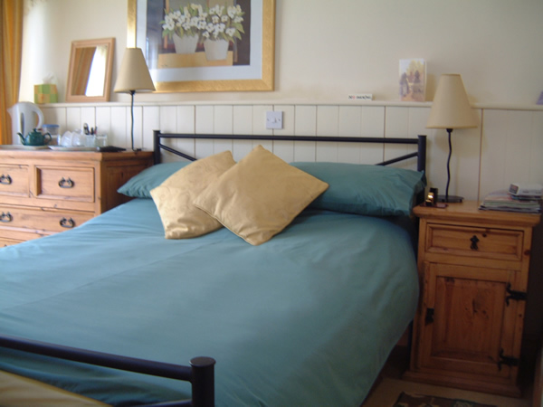 A comfortable room, with generous light through a large side window and views onto the spacious and pretty garden, own coffee and tea making facilities and television. |